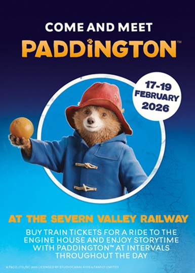 Take an exciting heritage train ride out into the countryside to see Paddington™ and listen to tales of his adventures at regular intervals throughout the day at The Engine House Visitor Centre, Highley, Tuesday 17 to Thursday 19 February 2026.
